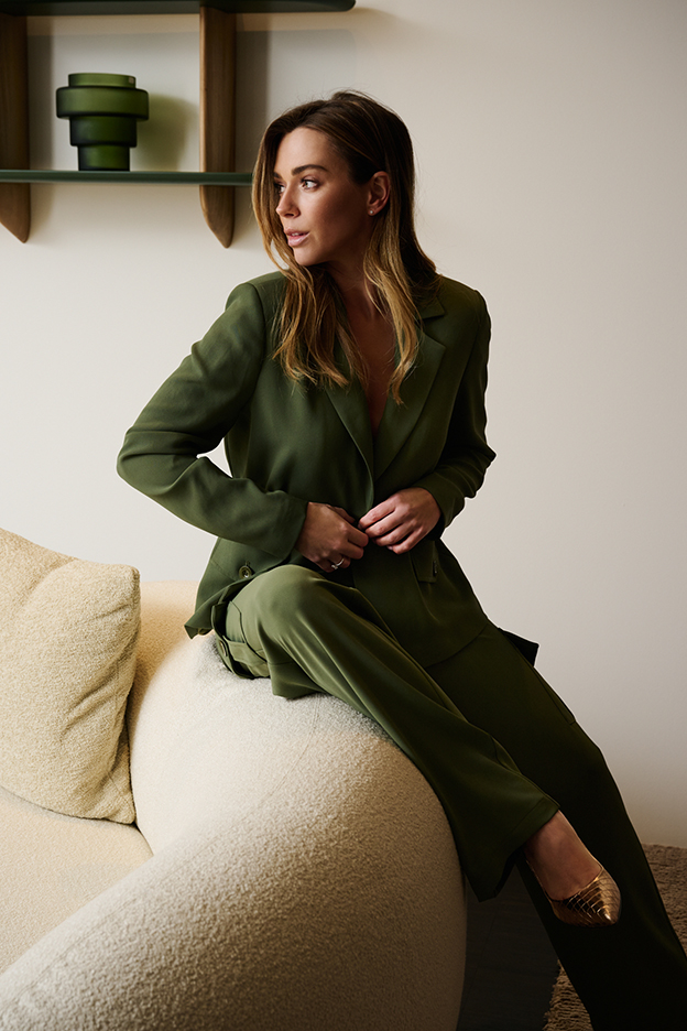 Blazer met elastiek in taille, kakki