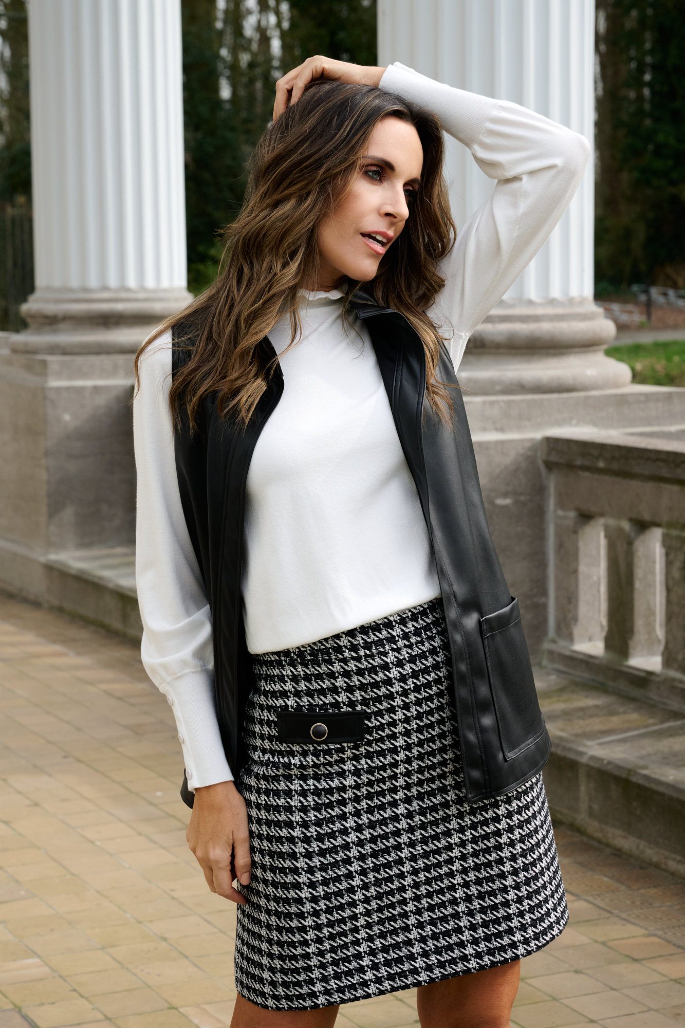 rok met leder klepzakjes, zwart
